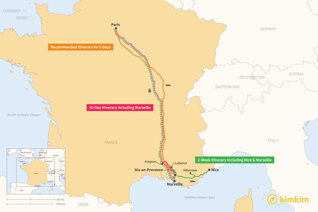 This comprehensive itinerary allows you to experience the highlights of Paris, Marseille, Aix-en-Provence, and Nice, offering a truly immersive French experience.