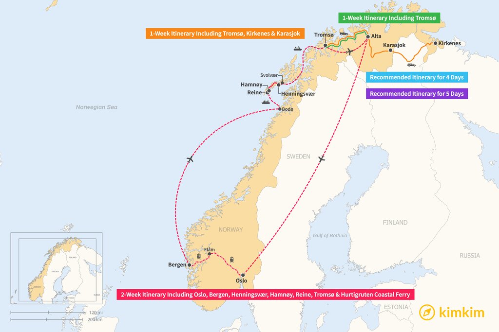 For those with more time to explore, consider these extended itineraries that incorporate other captivating destinations in Norway.