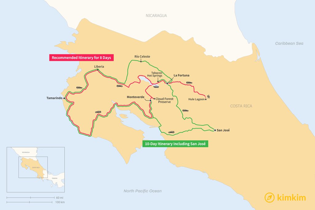 ### Recommended Itineraries for Arenal/La Fortuna, Monteverde & Tamarindo