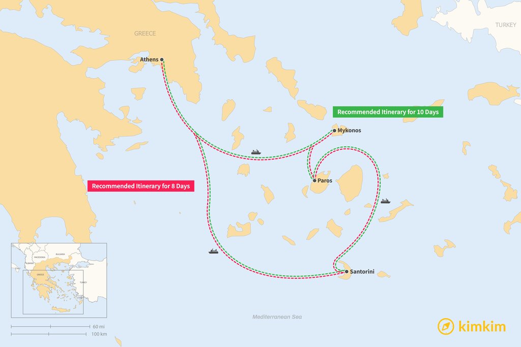 ## Recommended Itineraries for Athens, Paros, Santorini & Mykonos