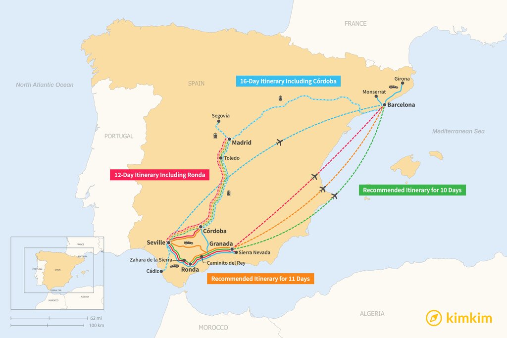 Understanding the best ways to travel between these major Spanish cities is crucial for efficient itinerary planning. Here’s a brief overview of transportation options: