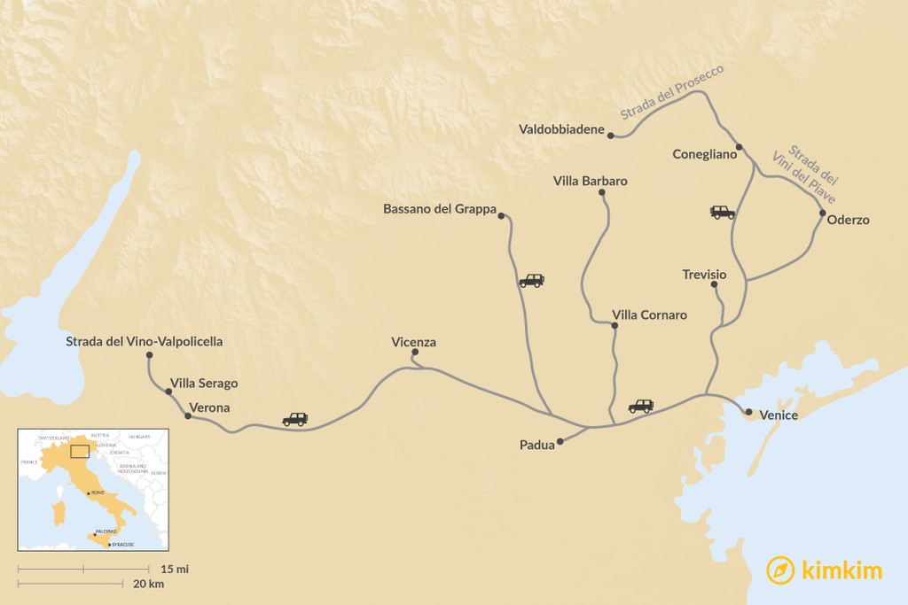 Many local wineries welcome visitors for tastings and purchases, with Arturo Vettori and Sorelle Bronca being just two of the many outstanding options. If your preferences lean towards red wine, Conegliano also marks the starting point of the Strada dei Vini del Piave, which stretches for 42 miles southeast to Oderzo, showcasing cabernets, merlots, and the distinctive Italian raboso. With more time to spare (a 1.5-hour drive), consider exploring the Valpolicella wine region outside Verona.