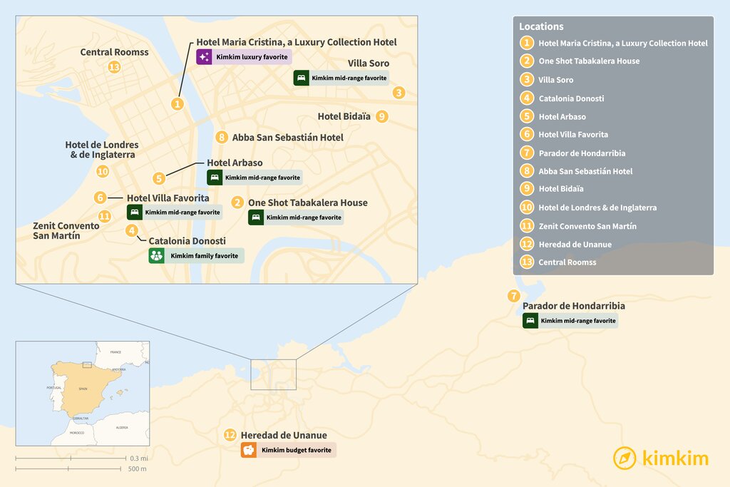 Historic hotels are aplenty in San Sebastián, and some of the best include those housed in luxurious villas, beautiful convents, and even famous city landmarks. After visiting and evaluating the hotels in San Sebastián, kimkim staff agreed that these 13 options were the best regarding historic elements, architecture, backstories, and amenities. And despite their age, these hotels still provide modern comforts like on-site restaurants, opulent lobbies, outdoor pools, stylish rooms, and more.