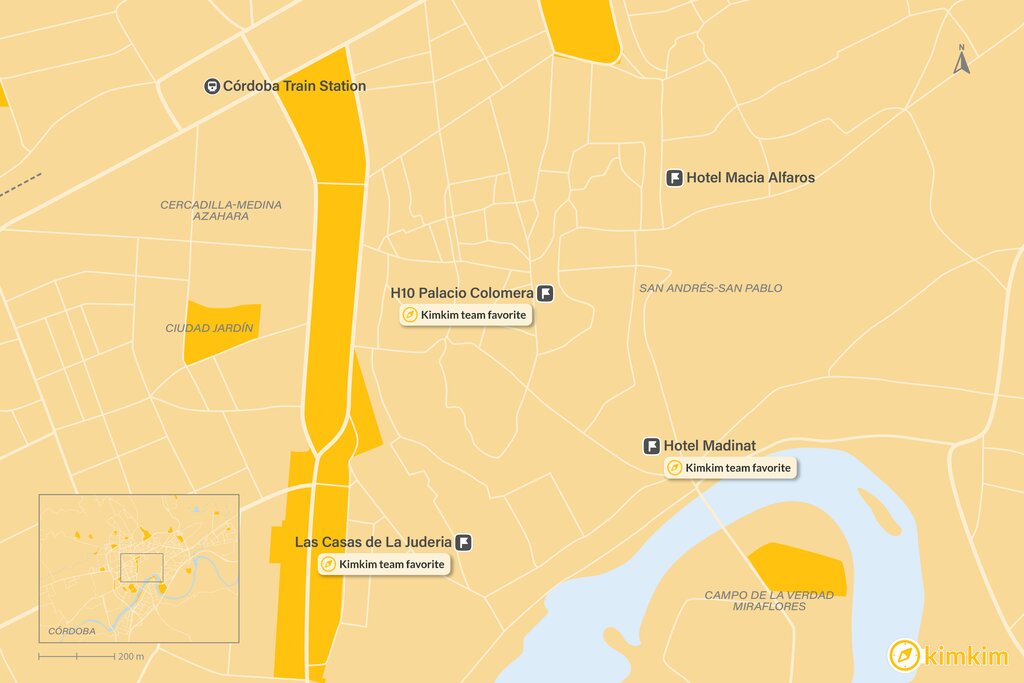Located just outside the bustling tourist zone, Hotel Madinat offers a peaceful retreat while still providing easy access to Córdoba’s main attractions. The Mezquita-Catedral is a mere five-minute walk away, and other significant sites such as the Puente Romano, **Alcázar Andalusí**, and **Plaza de la Corredera** are all within comfortable walking distance. Staying at Hotel Madinat allows you to experience the history of Córdoba without sacrificing peace and quiet.