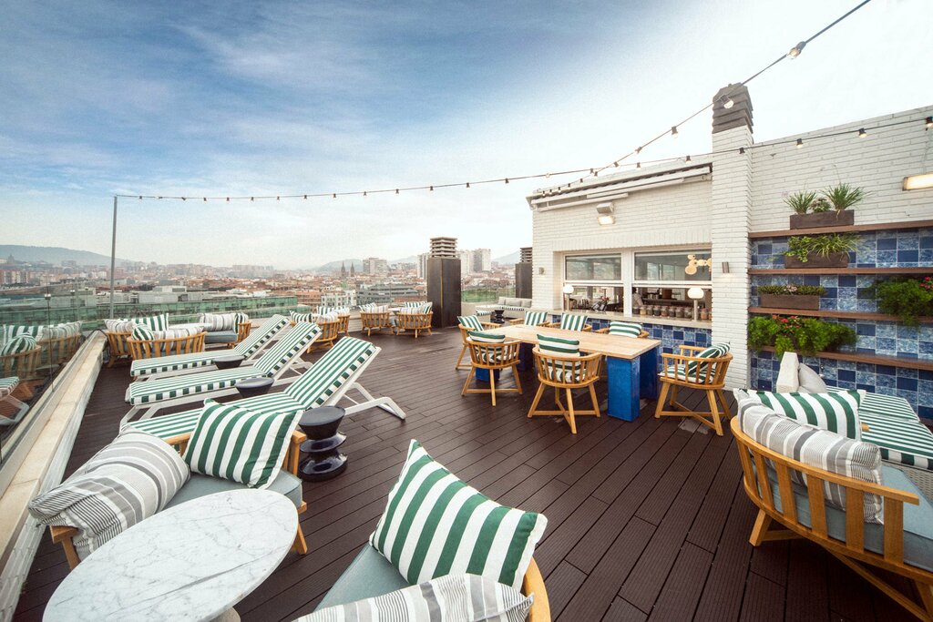 The hotel features a unique blend of traditional and modern design elements, creating a captivating atmosphere. The hotel’s concrete structure and chic aesthetic complement the city’s architecture, adding to its distinctive charm. Located just minutes from the cathedral and Plaza Nueva, guests can easily explore the city’s top attractions. For those seeking relaxation and fitness, the hotel offers a “chill room” in the attic and a 24/7 gym. In addition, the on-site bicycle parking caters to those who wish to explore the Basque Country on two wheels, providing a convenient and environmentally-friendly way to discover the region’s hidden gems.