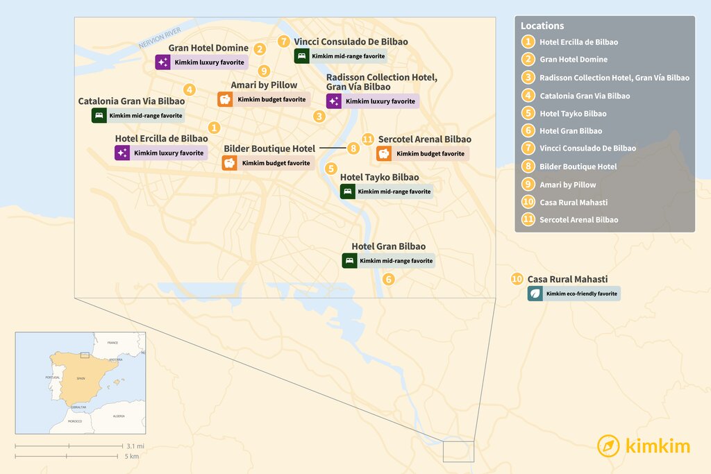 Bilbao’s hotel scene matches the city’s reputation, blending history with eclectic modernity. The best hotels in Bilbao reflect this combination with historic buildings, chic interiors, unique art, authentic decor, and the most sought-after amenity: a view of the impressive Guggenheim Museum. After visiting numerous hotels in Bilbao, kimkim put together this list of the best of the best, from surprisingly stylish budget options to elegant luxury picks.