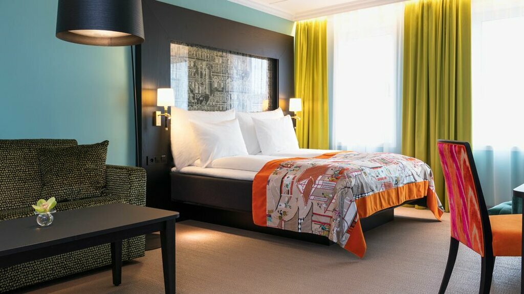 The hotel’s rooms are characterized by their colorful and contemporary design, featuring fresh decor and updated bathrooms with walk-in showers. Standard rooms are equipped with kettles, mini-fridges, and rain showers, while superior rooms offer additional space and amenities such as Nespresso machines, Bose speakers, bathrobes, and slippers. Business rooms are the largest category, featuring sofa beds that can accommodate up to four guests.