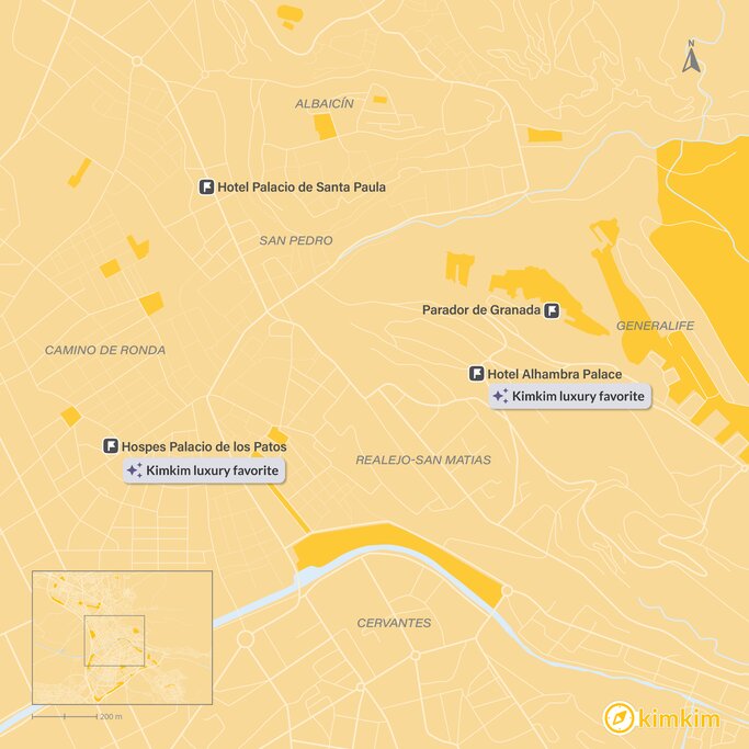 As one of the most sought-after boutique hotels in **Granada**, the **Hotel Alhambra Palace** also enjoys a prime location, just 10 minutes from **Granada’s Old Town**. This makes it an ideal base for exploring all that the city has to offer. To reach notable sites such as the **Catedral de Granada**, the picturesque **Darro River**, and the historic **Albaicín**, you can enjoy a leisurely stroll down the hill through charming, twisting streets. While the climb back up can be a bit strenuous, the path through the park offers a more pleasant ascent. Alternatively, taxis are readily available for a comfortable and convenient ride.