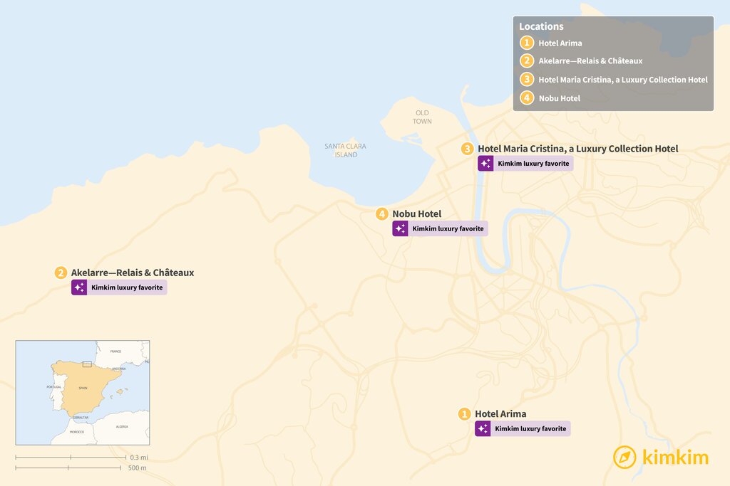 Though San Sebastián is known for its authentic, laid-back charm, the city does have three luxury hotels for those seeking an upscale stay. Kimkim visited the top hotels in the city and recommends the following 5-star options, all offering exclusive amenities like incredible city or sea views, high-end dining options, relaxing spa treatments, and/or elegant decor.