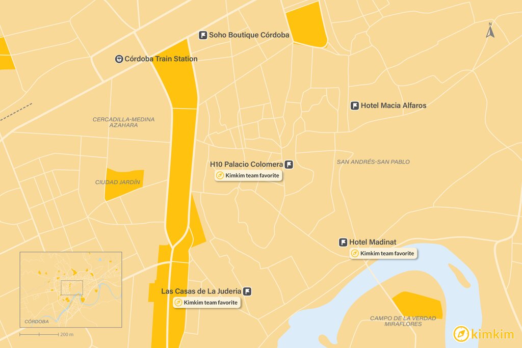 Reaching nearly all the significant sites takes approximately 20 minutes, with the Puente Romano and Mezquita-Catedral being the furthest away. The route takes you through the historic city’s core, allowing you to pass by all the major sites along the way. As an added bonus, one of the best restaurants in the city, **La Casa de Manolete Bistró**, is conveniently located just two blocks away.