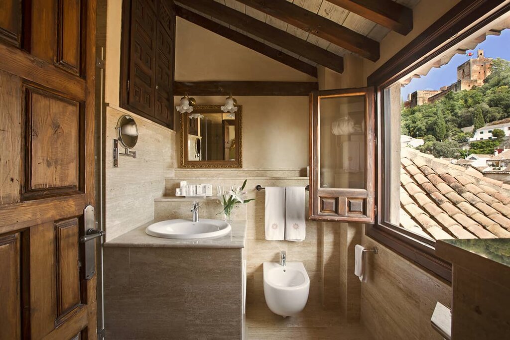 The rooms at Shine Albayzin are spacious and charming, particularly the suites, which boast inviting seating areas, large windows that flood the rooms with natural light, and breathtaking views of the Alhambra. Many rooms also feature delightful iron balconies, some overlooking the quaint cobbled streets and historic bridges that span the river, while others offer stunning vistas of the Alhambra. The hotel’s premier room, situated on the corner of the top floor, offers unparalleled panoramic views of the iconic palace and the rolling forested hills that surround it.