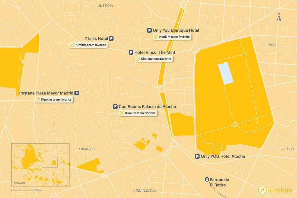 Although recommending the same hotel brand twice in one city is uncommon, **Only YOU Hotel Atocha** warrants an exception. Similar to its sister property in Chueca, this hotel offers a fun, unique, and eclectic experience, this time conveniently located just across the street from Atocha train station. This makes it an excellent choice for travelers arriving on late trains or departing on early ones. Despite its proximity to the train station, the hotel is still within walking distance of nearly all the city’s main attractions and just one block from the southern edge of El Retiro Park.