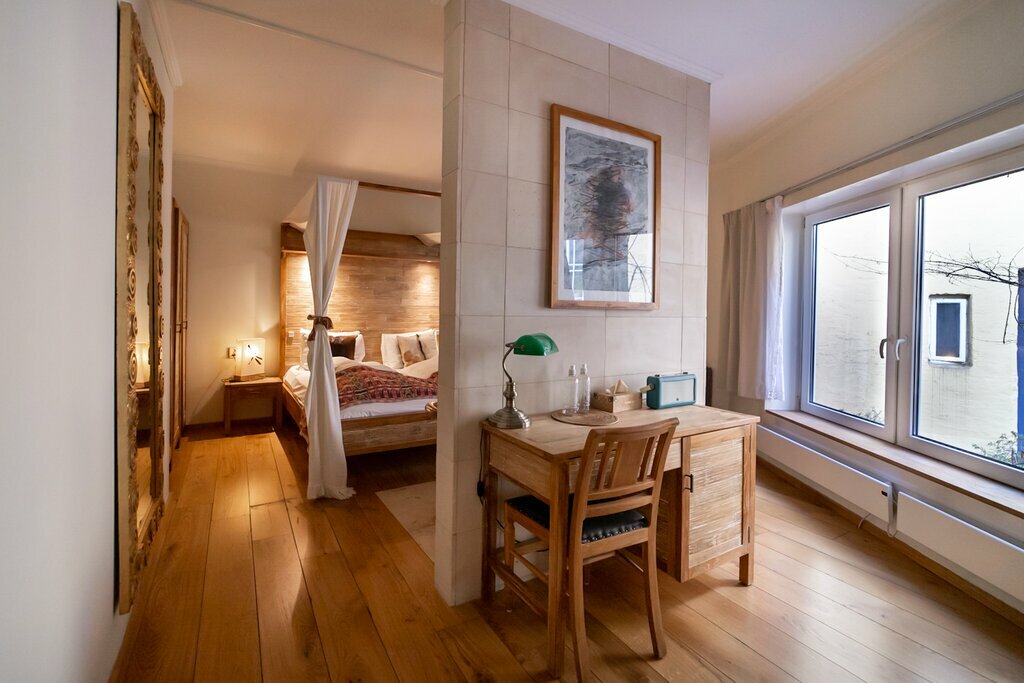 The rooms at the Oslo Guldsmeden have hardwood floors, canopy beds, and mounted iMac screens instead of televisions (with movies available for purchase). The iMac screens offer a modern and streamlined entertainment solution. The rooms also feature attractive textiles, such as deerskin throws and Asian rugs. These textiles add warmth, texture, and visual interest to the space, creating a cozy and inviting atmosphere. The rooms range in size, catering to solo travelers, couples, friends, and families. Adjoining rooms and multiple-bedroom suites are available, providing flexible accommodation options to suit various needs. The suites offer additional amenities such as bathrobes, slippers, and stand-alone tubs. These additional features enhance the comfort and luxury of the experience.