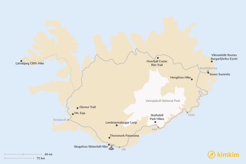Iceland offers plenty of hikes of any length. Curious hikers who venture just 15 minutes from the highway are often generously rewarded with emerald-green hills, mountain streams, dramatic cliffs and–best yet–no noisy crowds or gargantuan tour buses. Here’s a list of the best short hikes ranging from 1-8 miles, ideal for stops along road trips, and to leave the tour bus crowds behind even if you have limited time.