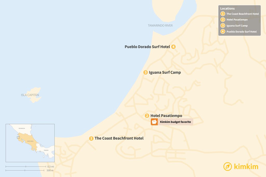 | The Coast Beachfront Hotel | Hotel Pasatiempo | Iguana Surf Camp | Pueblo Dorado Surf Hotel | |