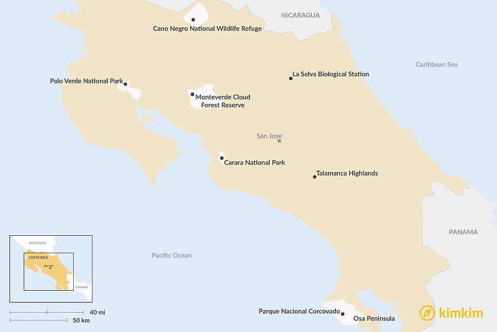 More than a quarter of Costa Rica is protected jungle, home to a wide variety of native wildlife—including 850 colorful species of birds. Learn about the country’s best areas to spot them, from the Osa Peninsula to the Monteverde Cloud Forest.