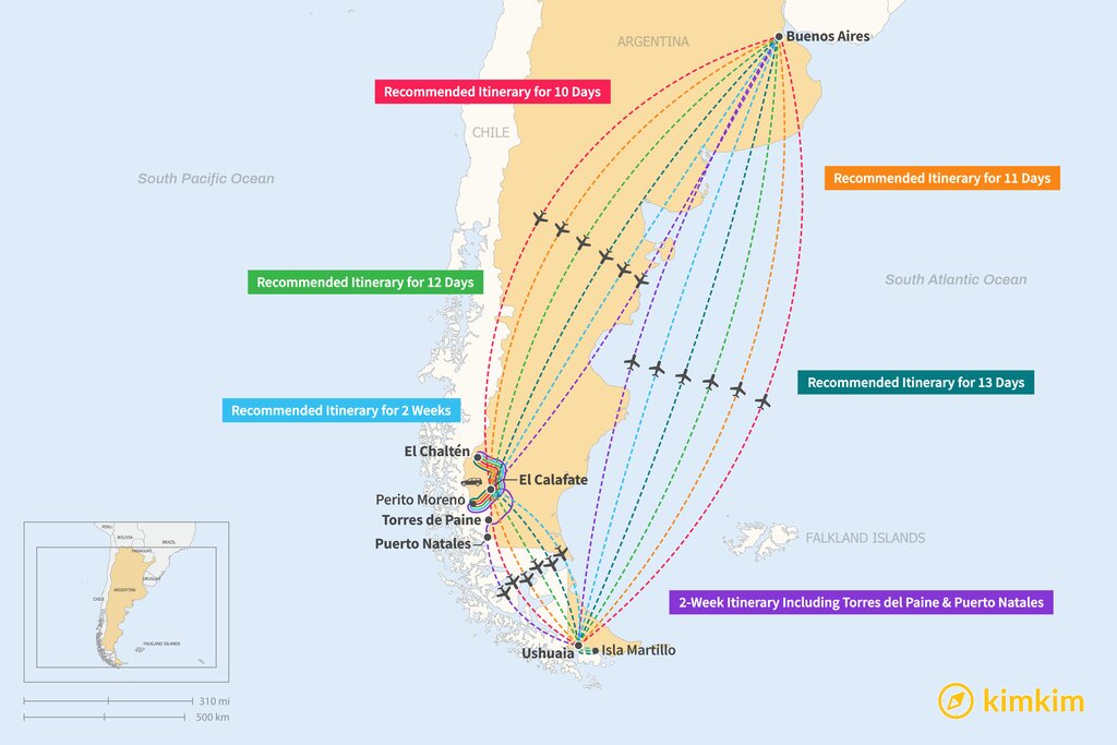 While visiting Buenos Aires, Ushuaia, El Calafate, and El Chaltén in a shorter timeframe of 8 or 9 days is feasible, be prepared for a whirlwind experience. Such a condensed itinerary may leave you feeling rushed, with limited time to fully appreciate the nuances of each location. You will be spending more time in transit and less time experiencing the activities.