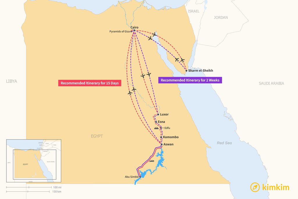 * Most travelers find that a 14-15 day itinerary provides a well-rounded experience, allowing sufficient time to explore Cairo, relax in Sharm el-Sheikh, and delve into the historical wonders of Aswan, Luxor, Esna, and Kom Ombo without feeling overly rushed. This duration provides a good balance between seeing the major highlights and enjoying some leisure time.