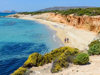Naxos is the largest island in the Cyclades, with some of the best beaches and most beautiful scenery. Nature sets the island apart from the others because of the green landscapes and hills, blending with the ocean colors. From spring to fall, there are a lot of activities taking place, and you can enjoy culture, watersports, festivals, and fantastic food. Every season has its charm, and the summers are highly popular among tourists, while winters are romantic and quiet.