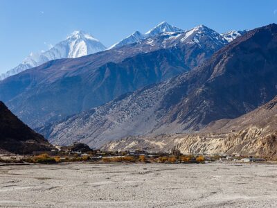 This scenic twenty-minute flight takes you over the Kali Gandaki Gorge to the town Jomsom at the southern edge of the Mustang region. Along the way, you'll enjoy spectacular views of Dhaulagiri (26,795 ft), Nilgiri (23,166 ft), and the entire Annapurna Himal.