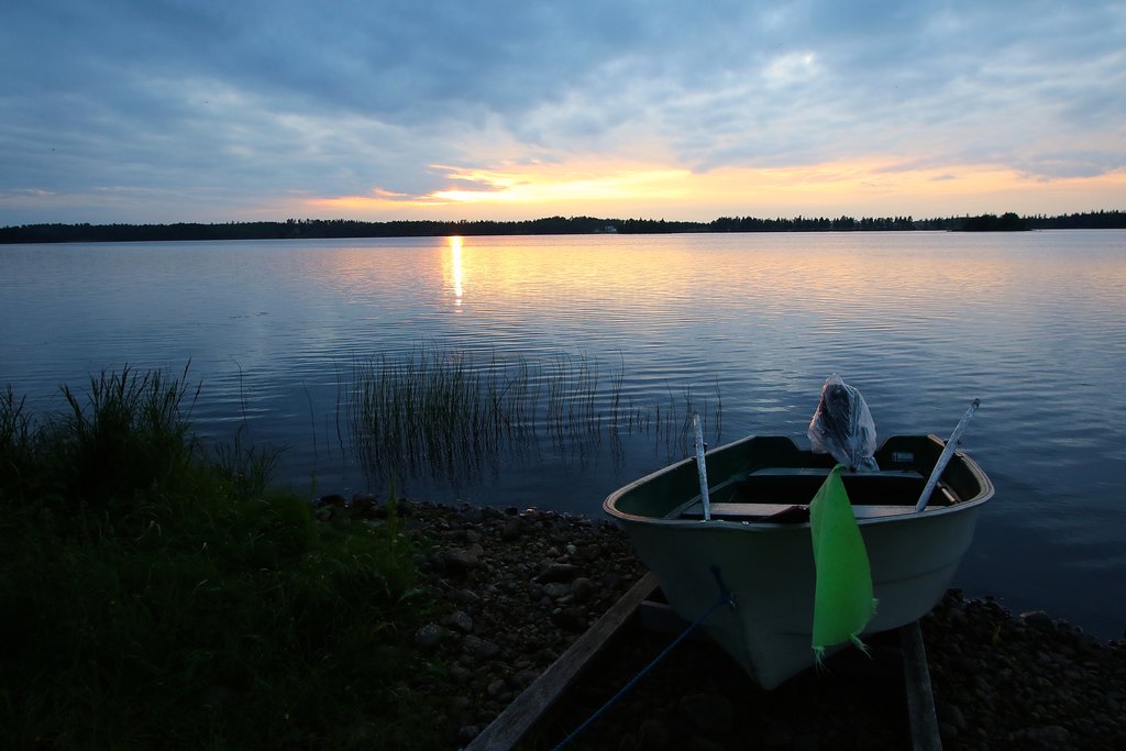 A breathtaking sunset over a tranquil lake in Ranua, a perfect end to a day of foraging