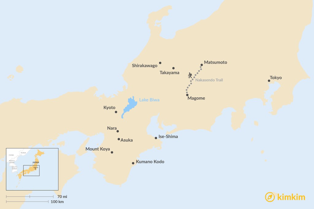 Delve into the rich tapestry of Japanese culture and spirituality with a journey to Mount Koya and the Kumano Kodo, and venture onward to discover the serene beauty of Ise-Shima, the historical significance of Nara and Asuka, and the captivating landscapes of Japan’s countryside.