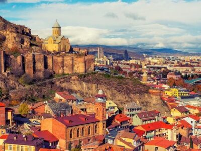 In the southeast, amid the Greater Caucasus Mountains and the banks of the Kura River, you’ll find Georgia’s ancient capital city: Tbilisi. It dates back to the 5th century, and its streets are filled with architectural remnants of rising and falling kingdoms, ephemeral republics, and foreign domination by Roman, Byzantine, and Russian empires.