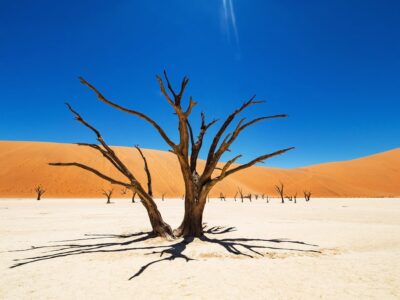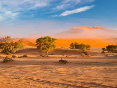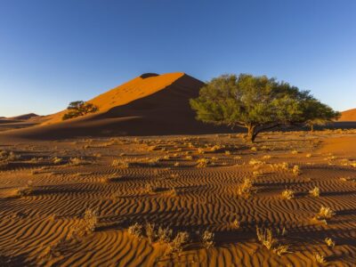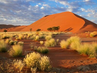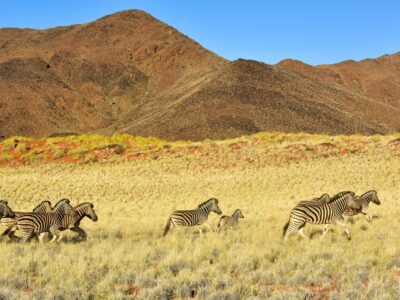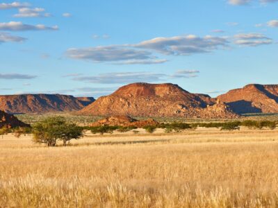 A true year-round destination, Namibia is nice to visit in any season. Summer spans October to May, with mostly warm and sunny days—highs are around 90°F. Technically, this is also the rainy season, though most bouts of rain are short-lived and there can be days (or even months) between them. Spring and autumn (falling in September and June, respectively) are both short transitional periods with pleasant weather. During winter months (late June through August) expect lots of sunshine and brisk mornings, with daytime highs in the 60-70°F range. Nights can be cold—travelers planning to camp should pack accordingly.