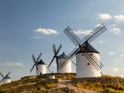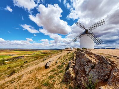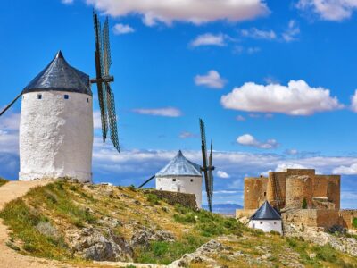 Most travelers fly into either Madrid or Barcelona, and short, domestic flights are a convenient way to hop between major cities. Flying is also the best option for reaching the Canary Islands, Ceuta, and Melilla. For areas without airports, Spain’s high-speed AVE trains are fast and comfortable. Driving is another good option, as cities are mostly connected by well-maintained highways.