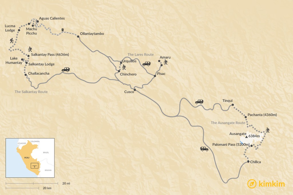 The total distance covered during the 5-day trek is 16.7 miles (27 km), while those who embark on the 7-day trek will traverse a total distance of 27 miles (43 km). No matter which option you choose, prepare to be captivated by the stunning scenery, rich cultural heritage, and invigorating physical challenge that the Lares Route has to offer.
