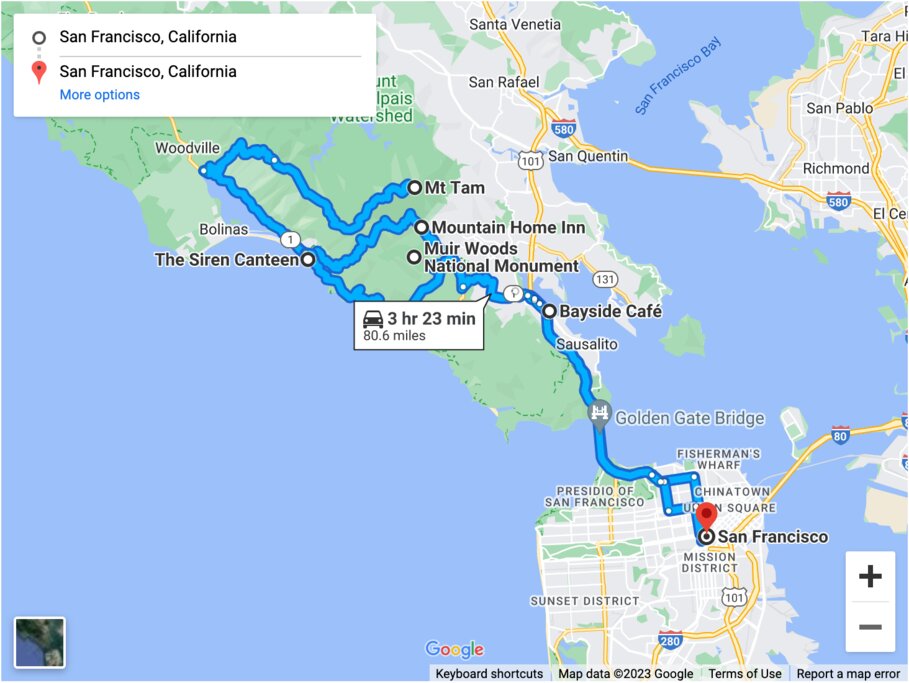 Begin your day by embarking on a journey towards the iconic Golden Gate Bridge. Allow the hustle and bustle of city life to gradually recede into the background as you traverse this incredible feat of engineering, standing tall for over eight decades. A worthwhile stop awaits in Sausalito, where you can find Bayside Cafe, a perfect spot to indulge in your morning coffee. Absorb the unique and charming ambiance of Sausalito, a quaint town renowned for its breathtaking panoramic views of the sprawling city across the bay. Take a leisurely stroll around the picturesque harbor, breathing in the fresh air and soaking in the scenery before continuing your adventure toward Mt Tam.