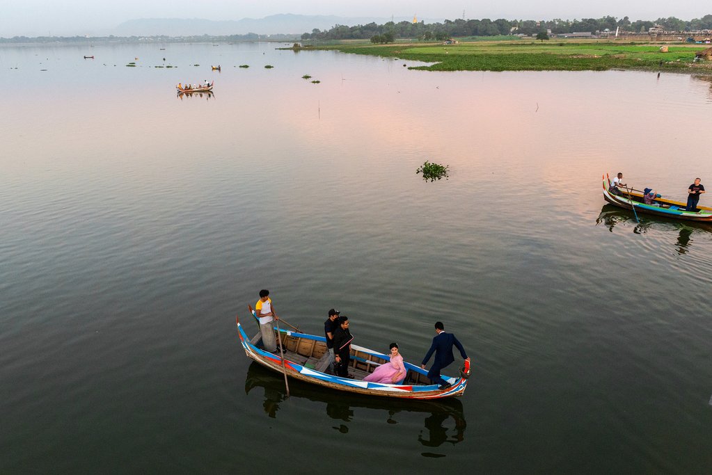 Next, you’ll proceed to Kuthodaw Pagoda, often referred to as “The World’s Biggest Book.” This unique site features 729 marble slabs, each meticulously inscribed with Buddhist teachings, creating a vast open-air library. In the late afternoon, make your way to Shwenandaw Monastery, a beautiful teak monastery known for its intricate wood carvings. As the sun begins to set, stroll along the legendary U Bein Bridge, the longest teak bridge in the world, and witness the breathtaking sunset over the Taungthaman Lake.