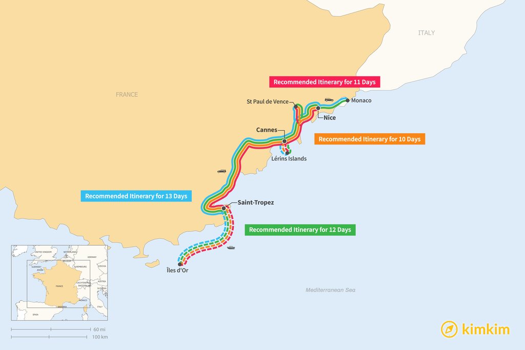 - Visiting Nice, Cannes, and Saint-Tropez in 7 to 9 days is possible, but it will feel rushed