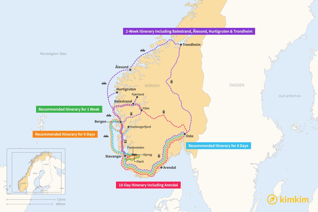 On the other hand, if you have the luxury of 10 days or more, the possibilities are endless! With an extended trip, you can venture beyond the main cities and incorporate additional stops to enrich your Norwegian adventure. Popular extensions include the charming coastal town of Arendal, the picturesque village of Flåm nestled amidst stunning fjords, and the adventure hub of Odda, known for its challenging hikes and breathtaking scenery.
