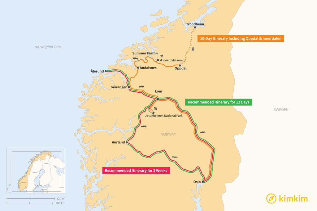 For those with a bit more time, this two-week itinerary allows for a more relaxed pace, with extended stays in key locations to fully appreciate their beauty and charm, while encompassing Oslo, Lom, Ålesund, Geiranger, and Aurland.