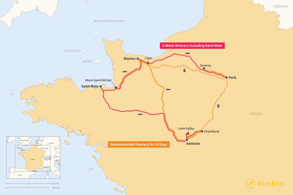 - The most common and highly recommended extensions to this itinerary are the charming coastal town of Saint-Malo and the vibrant city of Tours.