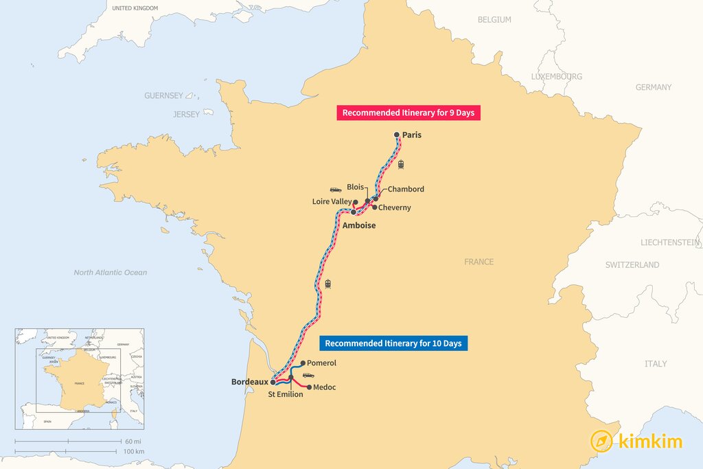This 9-day itinerary allows you to experience the highlights of Bordeaux, the Loire Valley, and Paris, offering a diverse and enriching journey through France.
