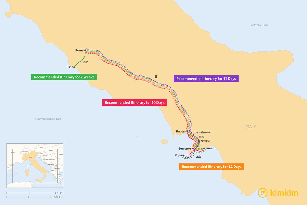 ### Recommended Itineraries for Rome, Naples, the Amalfi Coast & Sorrento