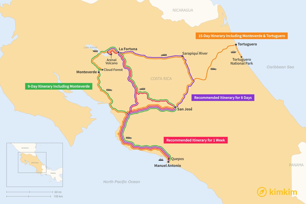 - While visiting San José, Arenal/La Fortuna, and Manuel Antonio in a shorter span of 5 or 6 days is achievable, be prepared for a whirlwind tour. This condensed itinerary necessitates prioritizing activities and accepting a faster pace of travel.