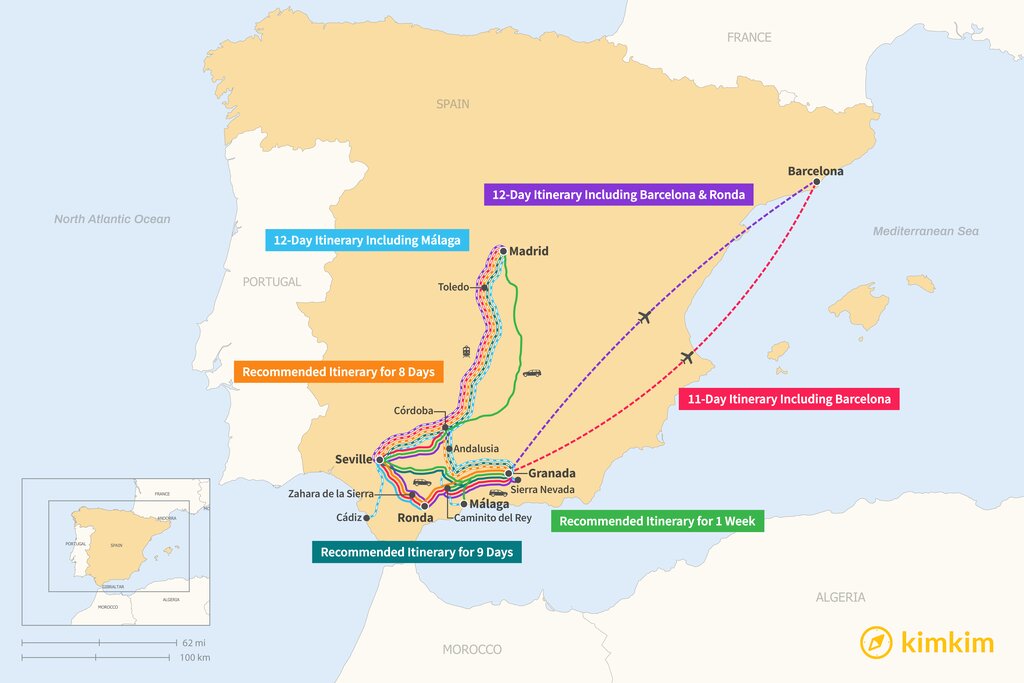 ## Recommended Itineraries for Seville, Madrid, and Granada