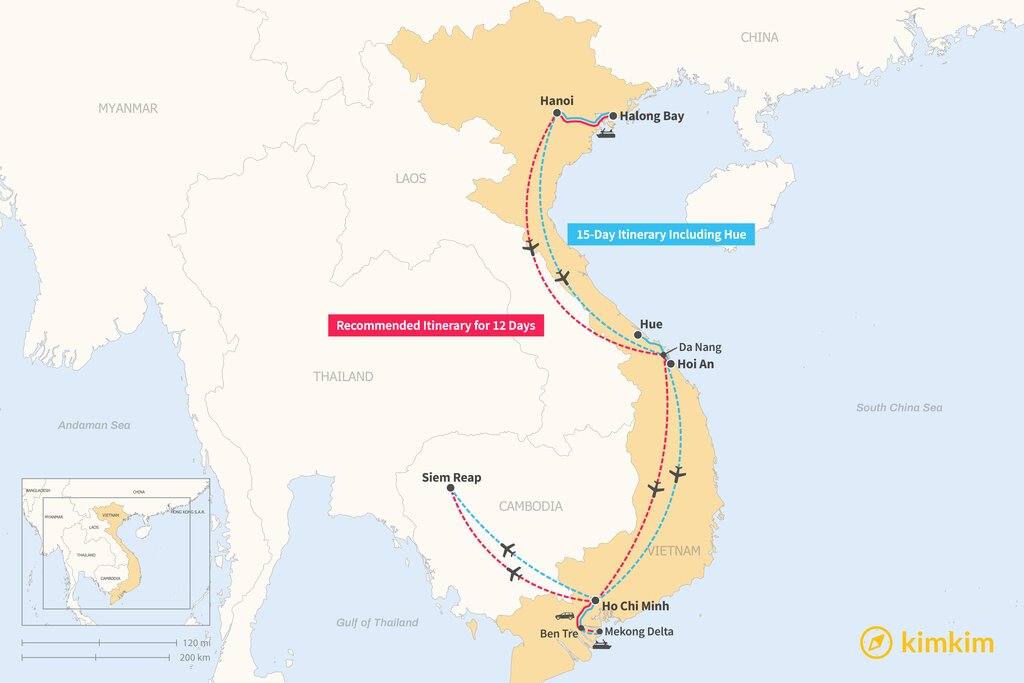 This 15-day itinerary builds upon the previous one, adding a visit to Hue, the former imperial capital of Vietnam, offering a deeper dive into the country’s history and culture.