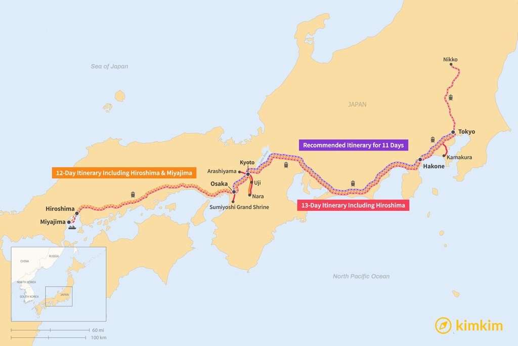 * For those fortunate enough to have 13 or more days to dedicate to their Japanese adventure, the possibilities expand significantly. With this extended timeframe, most travelers opt to incorporate additional destinations into their itinerary, enriching their overall experience and gaining a broader perspective on Japan.