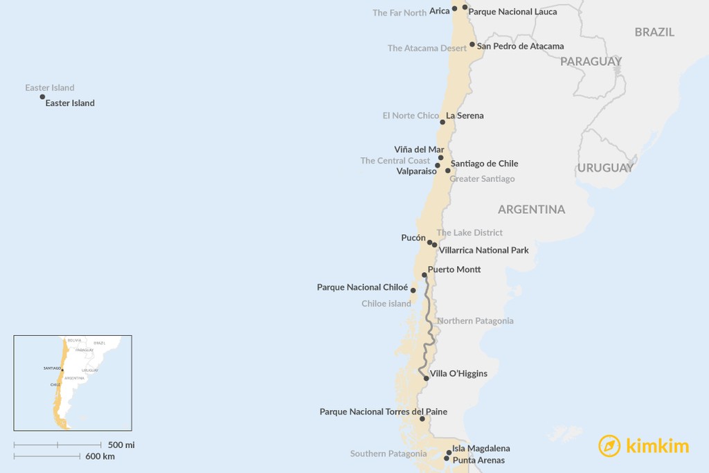 A magnet for nature lovers, Chile has a little of everything, from ice-capped volcanoes to lush rain forests. The diversity of its landscapes and vast size offer limitless adventures: trekking past glaciers and soaring Patagonian peaks, watching sunsets over otherworldly desert valleys, and basking in mountain hot springs or on a white-sand beach after long days of exploring. The following is a list of the country’s top 10 regions to visit when traveling one of the world’s longest countries. _x000D_