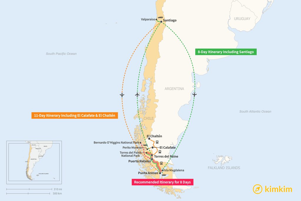 **Recommended Itineraries for Torres del Paine, Puerto Natales & Punta Arenas**