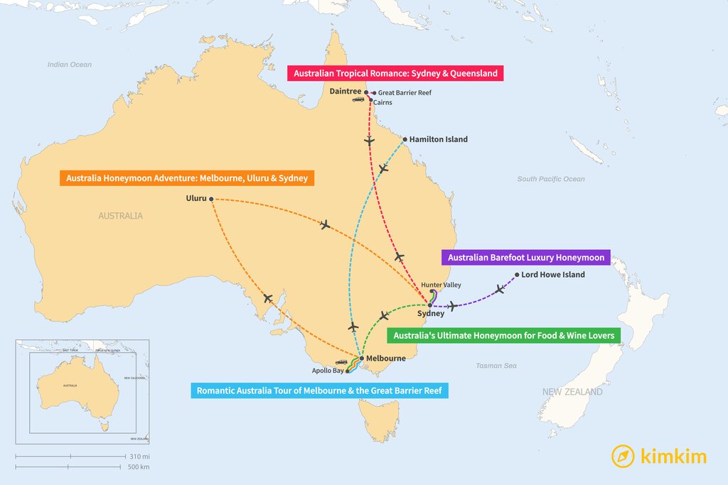 Map of 1 Week in Australia – 5 Honeymoon Itinerary Ideas
