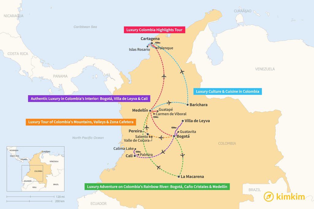 Map of 1 Week in Colombia – 5 Luxury Itinerary Ideas