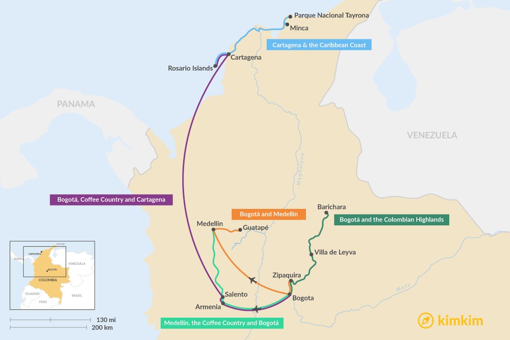 Map of 1 Week in Colombia – 5 Unique Itinerary Ideas