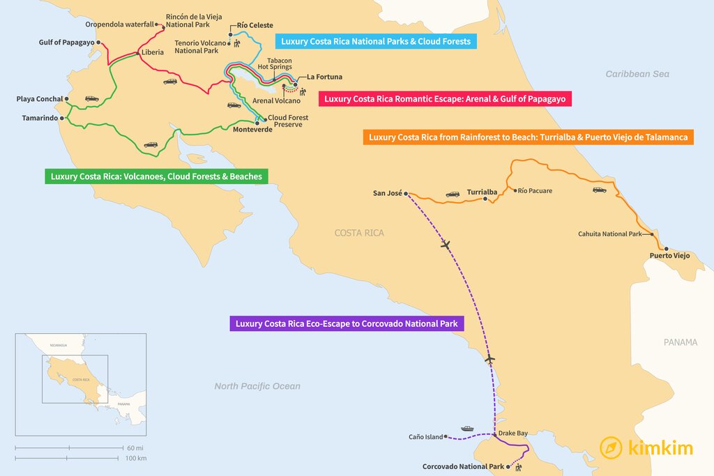 Map of 1 Week in Costa Rica – 5 Luxury Itinerary Ideas