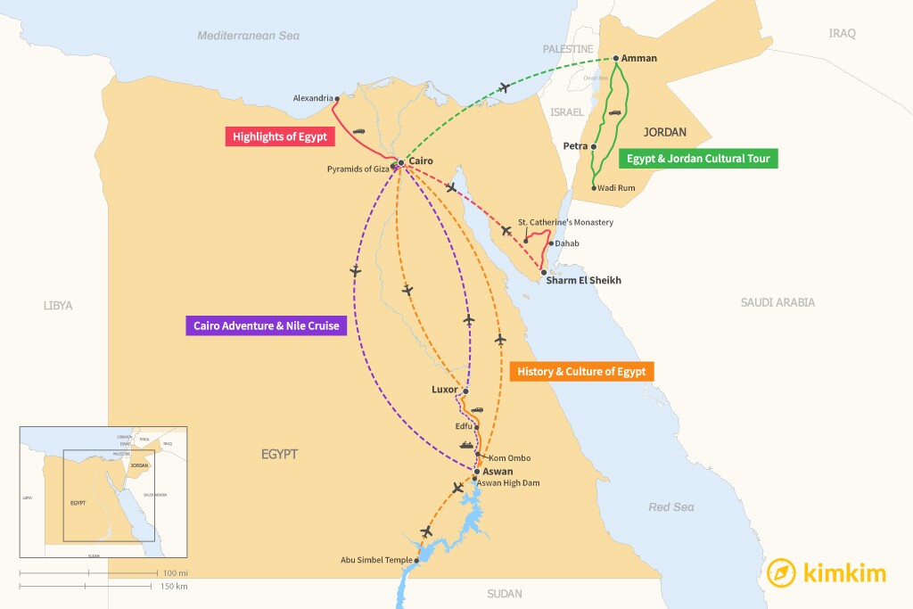 Map of 1 Week in Egypt – 4 Unique Itinerary Ideas