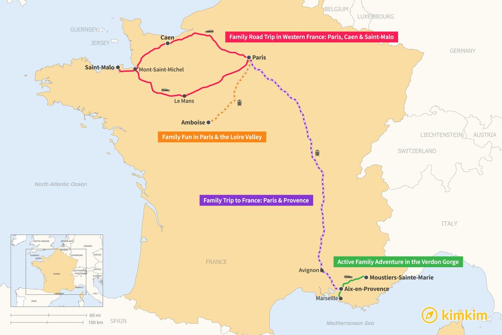 Map of 1 Week in France – 4 Family-Friendly Itinerary Ideas